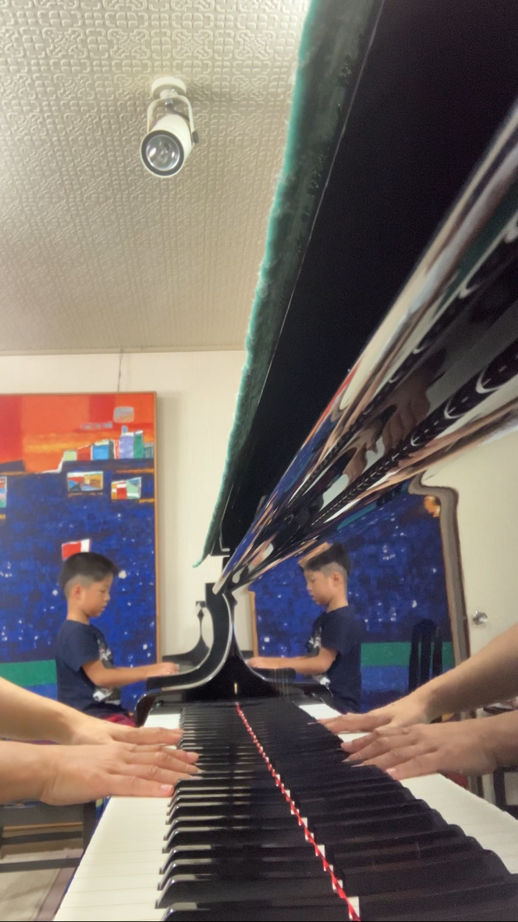 プレピアノコースからスタートし4月からピアノコースの男の子、両手で演奏楽しんでます。